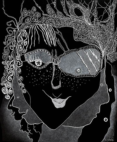 'POSING FOR MY CLOSE UP' ink on paper 14"x17"'