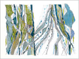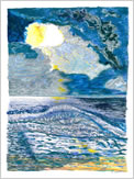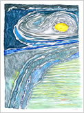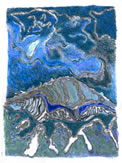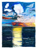 "RAIN-WAVE-LAND-SKY" Series, an imaginary recreation from childhood, comes to the surface in my art. Growing up in a small village near the ocean, I remember an interior life bubbling over with a rebellious yearning to construct a magical world populated to overflowing with fanciful images.