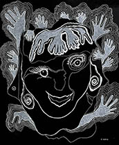 The paper was first approached with an aimless line that showed I didn’t know where I was going. Persistence, however, resulted in an impressionistic face with lots of added details. The first drawing was followed by 23 others, keeping the same theme, some of them playful, some sweet, many about friendship, always with a main individual whose image creates the theme. Naming them is fun. |