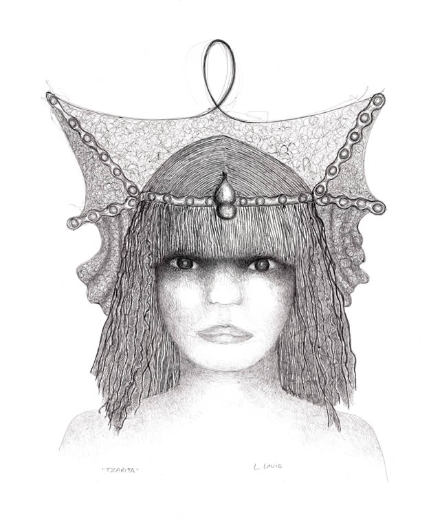TZARITA Here is the fiercest Woman Warrior! Don't cross 19-year old Tzarita or she may stick your effigy with pins and say magic words over you. A dedicated feminist, Tzarita is the consummate African queen whom all nations want to claim for their own. | |